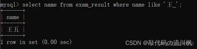 select name from exam_result where name like '王_';