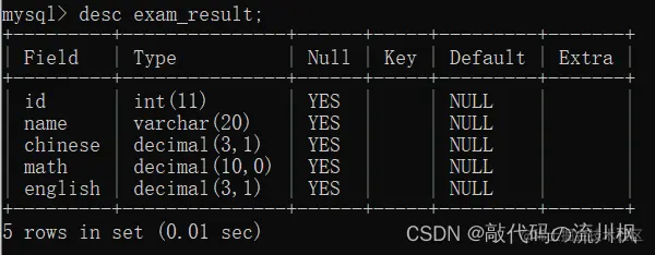 insert into exam_result(id,name,chinese,math,english) values