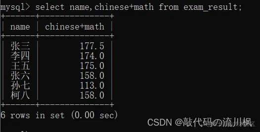 select name,chinese+math from exam_result;