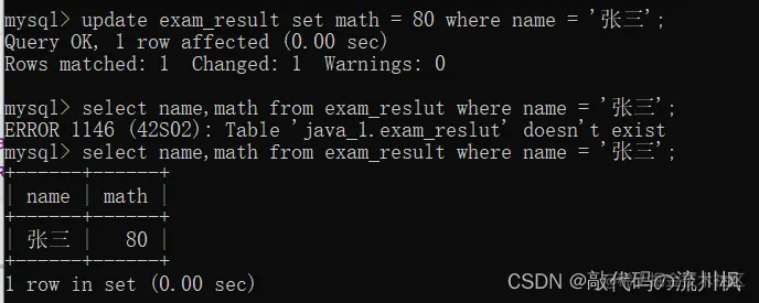 update exam_result set math = 80 where name = '张三';