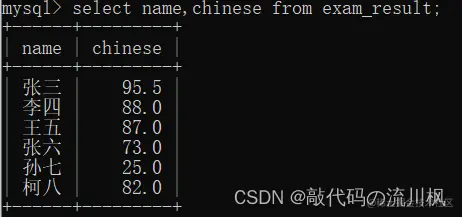 select name,chinese from exam_result;