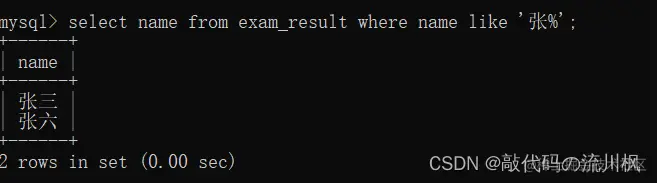 select name from exam_result where name like '张%';
