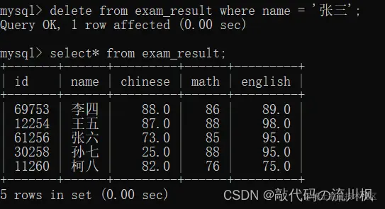 delete from exam_result where name = '张三';