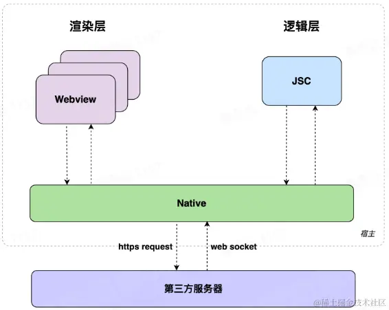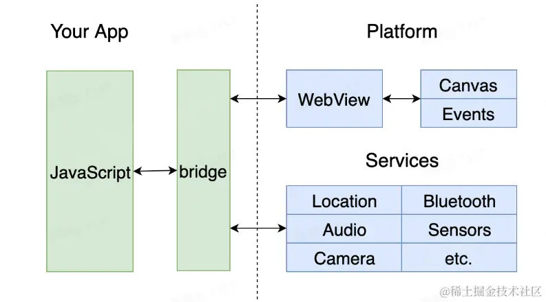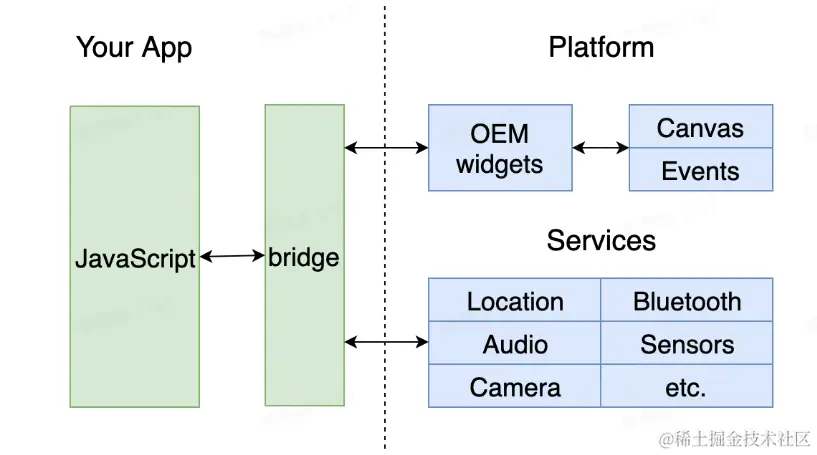 基于 webview 渲染,通过 JS Bridge 把部分系统功能开放给 JS 调用