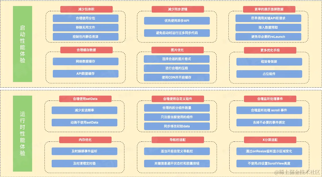 - 减少包体积 - 合理使用分包,及时清理冗余资源,控制静态资源大小