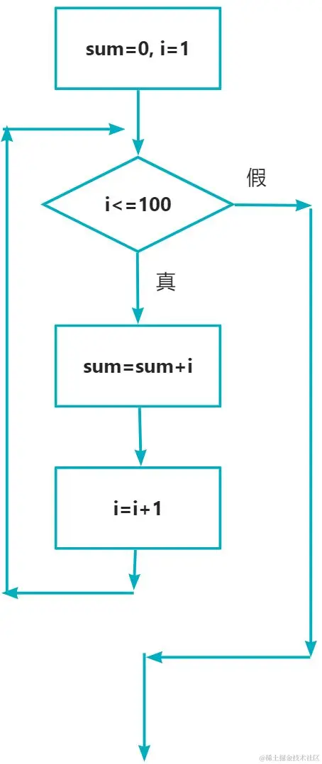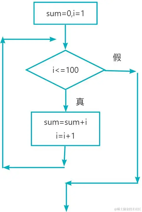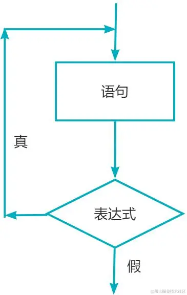 (2)判断条件,如果值为真,则执行步骤(3),否则跳出循环体,继续执行该结构后面的语句。