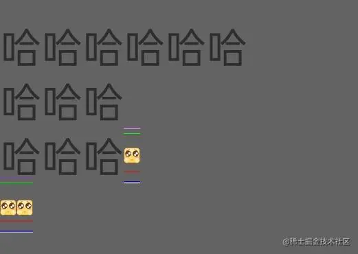可以很清晰的看到,在只有表情的情况下,top, ascent, descent, bottom的位置有明显的问题。原因是 DynamicDrawableSpan 的 getSize 方法里面对 FontMetricsInt 进行了修改。解决的方式很简单,就是注释掉修改代码就行,代码如下。修改后,效果如下图所示。