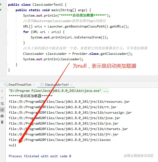 - Java的核心类库都是使用引导类加载器加载的,比如String;
