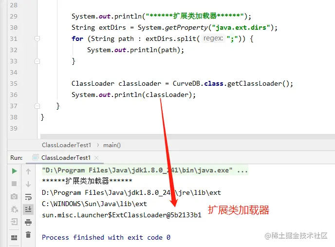- 从java.ext.dirs系统属性所指定的目录中加载类库,或从JDK的安装目录jre/lib/ext子目录(扩展目录)下加载类库。如果用户创建的jar放在此目录下,也会自动由扩展类加载器加载