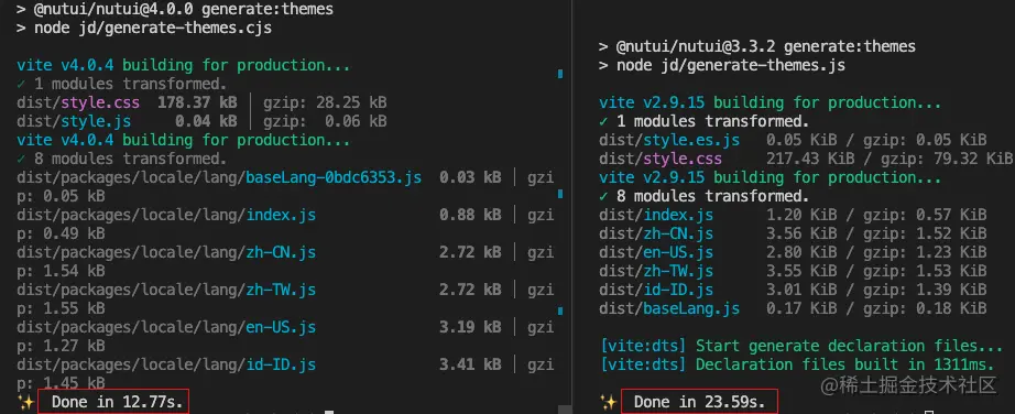 NutUI 4.0 将底层构建工具从 Vite 2 升级到 Vite 4,构建时间减少了 10 秒
