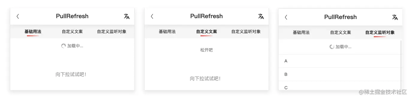 新增 PullRefresh 组件,用于下拉刷新的交互操作。