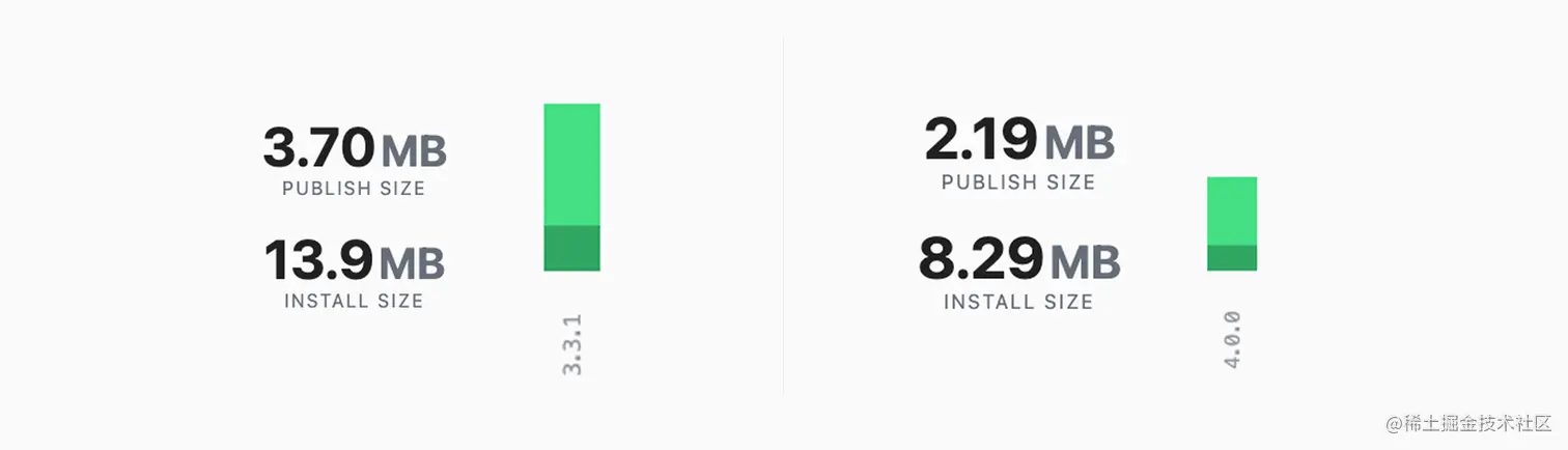 NutUI 一直以来以轻量化为核心理念,在组件体积、NPM 依赖、构建产物等方面持续进行优化。相较于 NutUI 3.3.1,NutUI 4.0 的安装体积由 14MB 下降至 8MB,减少 42%。