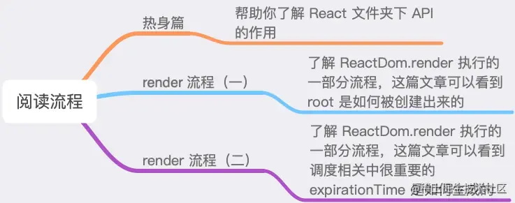 这句代码告诉了 React 应用我们想在容器中渲染出一个组件,这通常也是一个 React 应用的入口代码,接下来我们就来梳理整个 render 的流程,并且会分为几篇文章来讲解,因为流程实在太长了。