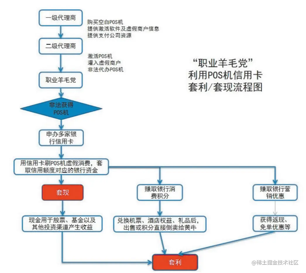 图1 “职业羊毛党”利用POS机信用卡套利/套现流程图