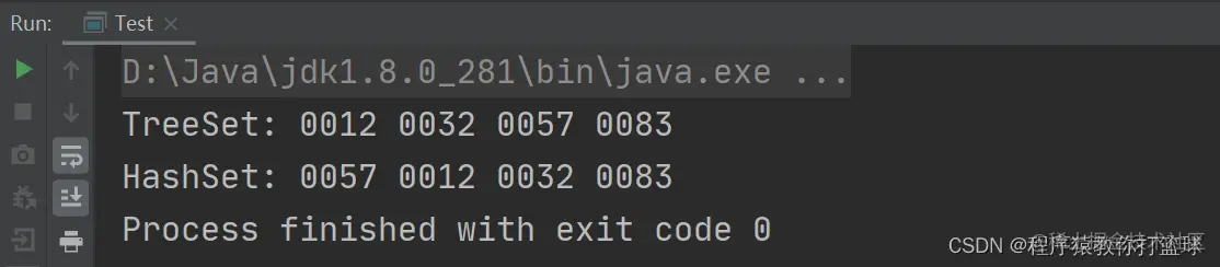 因为 Set 的底层就是 Map,那么这里我们就来验证下 TreeSet 关于 key 有序,而 HashSet 不关于 key 有序。