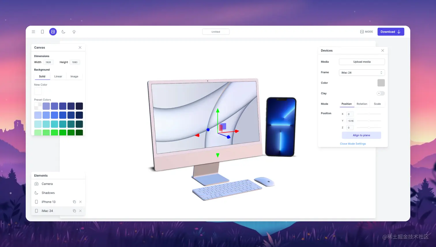 上周正好需要用到这样的一个可以自定义角度的设备 Mockup,网上别人做好的 Mockup 素材太多了而且参差不齐,这个网站是可以自己调整设备角度,光影颜色等等,也很良心,可以免费导出JPG,如果需要透明图层可以付费,不过对于会抠图的设计师来说免费的已经非常够用了。