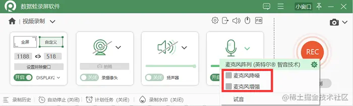 当然,数据蛙录屏软件还有更多的功能等待你的使用,比如麦克风降噪/增强、摄像头画面降噪、自动停止、计划任务、自定义水印、录制鼠标和键盘输入状态、预览剪辑等等。