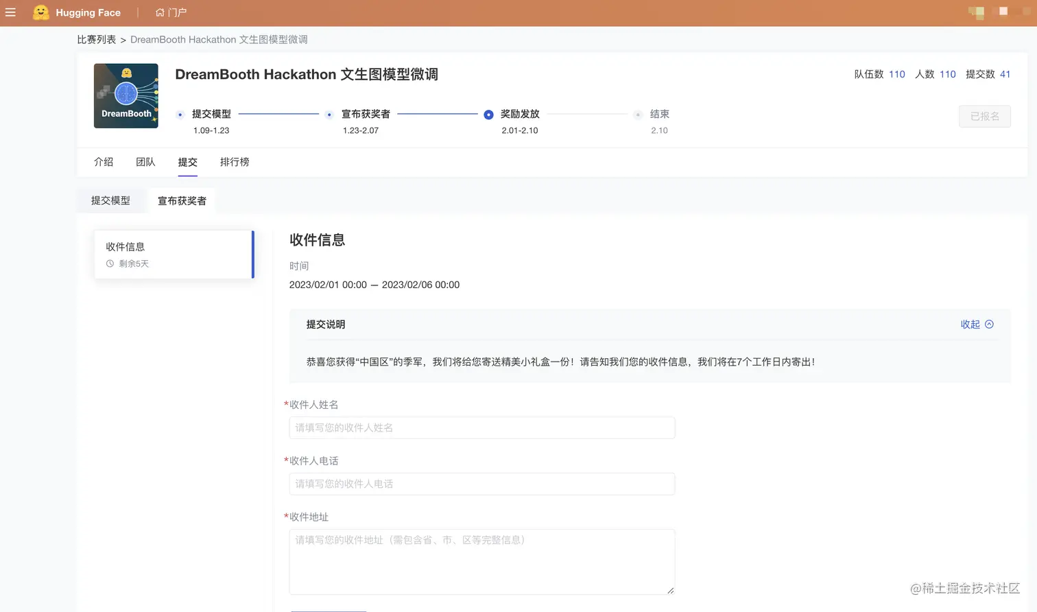 填写领奖信息链接: www.heywhale.com/org/Hugging…