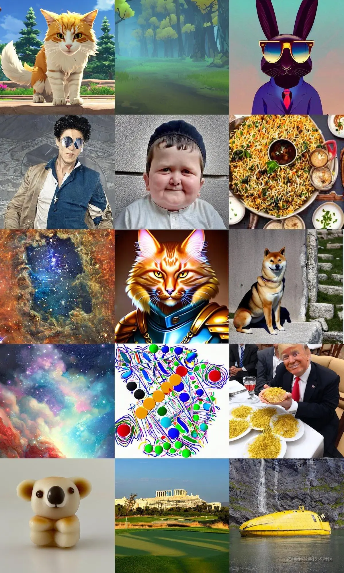 去年 12 月底,我们面向全球的开发者举办了 DreamBooth 编程马拉松活动。通过 DreamBooth,你可以使用少量的图像对文生图模型进行微调,将你「喂给」模型的图片信息进行命名,就可以通过「你的命名」+ 提示词生成各种各样的图片,比如将你的修狗照片喂给模型,就可以生成以它为主体的各种图片: