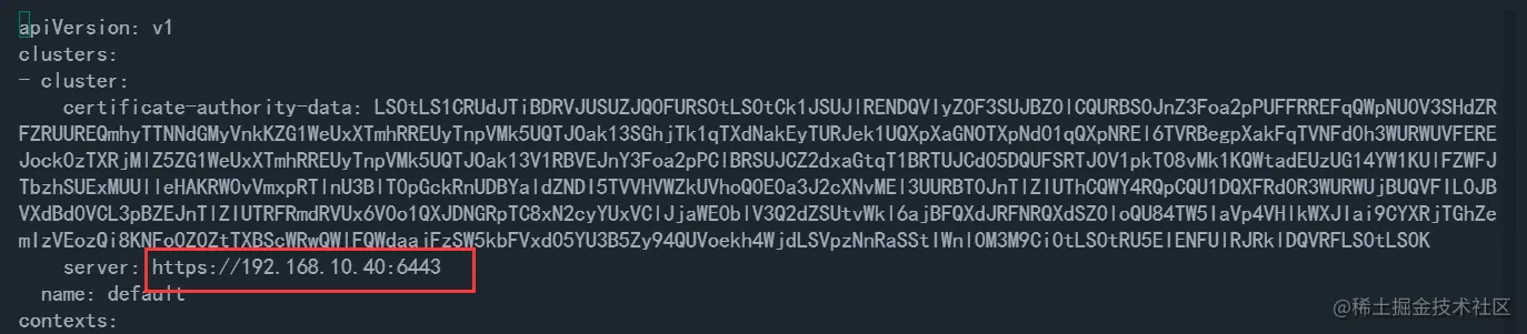 还有最后一步,就是替换~/.kube/config这个文件中的server地址。 !将标红处,server的ip地址修改为正确地址。 这样在agent节点也可以运行kubectl命令了。