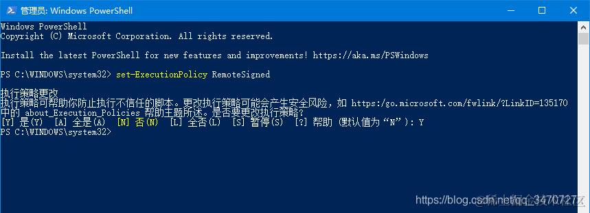 vue:无法加载文件,因为在此系统上禁止运行脚本。 爱宇阳 2023-02-06 312 阅读1分钟 右击开始菜单,打开Window Powershell(管理员)。 运行命令: set-ExecutionPolicy RemoteSigned 出现效果: 输入"Y",运行即可