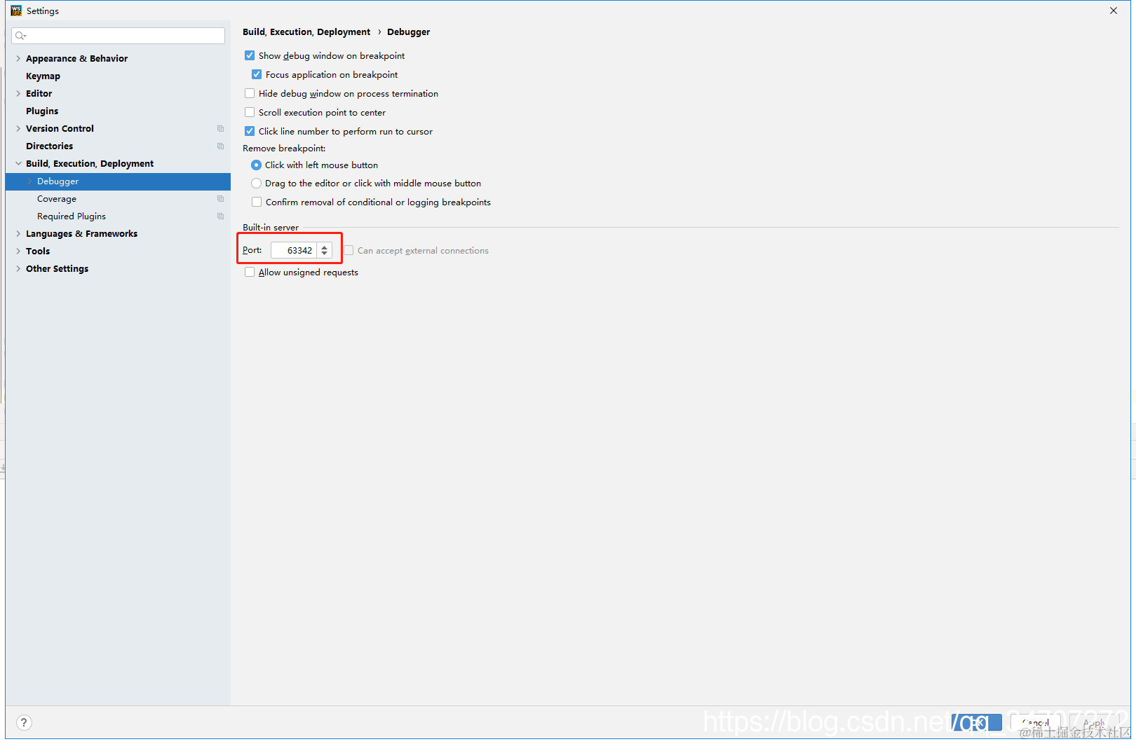 File --> Settings --> Build,Execution,Deployment --> Debugger