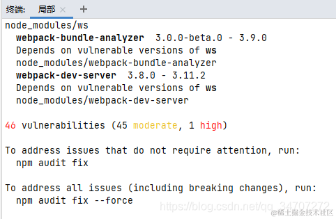 为了提高 npm 依赖的安全,npm 6.1 后添加了 npm audit 工具,这个工具可以搜索当前项目中使用的依赖是否存在安全问题,并提供了 npm audit fix 工具修复。