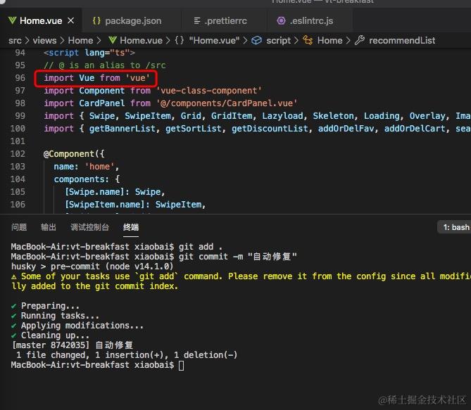 对于 Eslint 修复不了的代码 commit 会失败并给出提示 — “git add” 配置