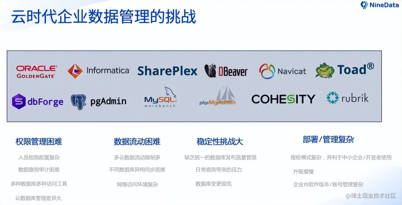在云时代,开发者与企业需要怎样的数据管理产品,一方面提升开发者的效率加速企业发展,另一方面又需要保障数据安全。NineData则是尝试在两者之间找到平衡,让开发者能够高效率且安全地完成企业内部的数据管理,发掘企业数据价值。