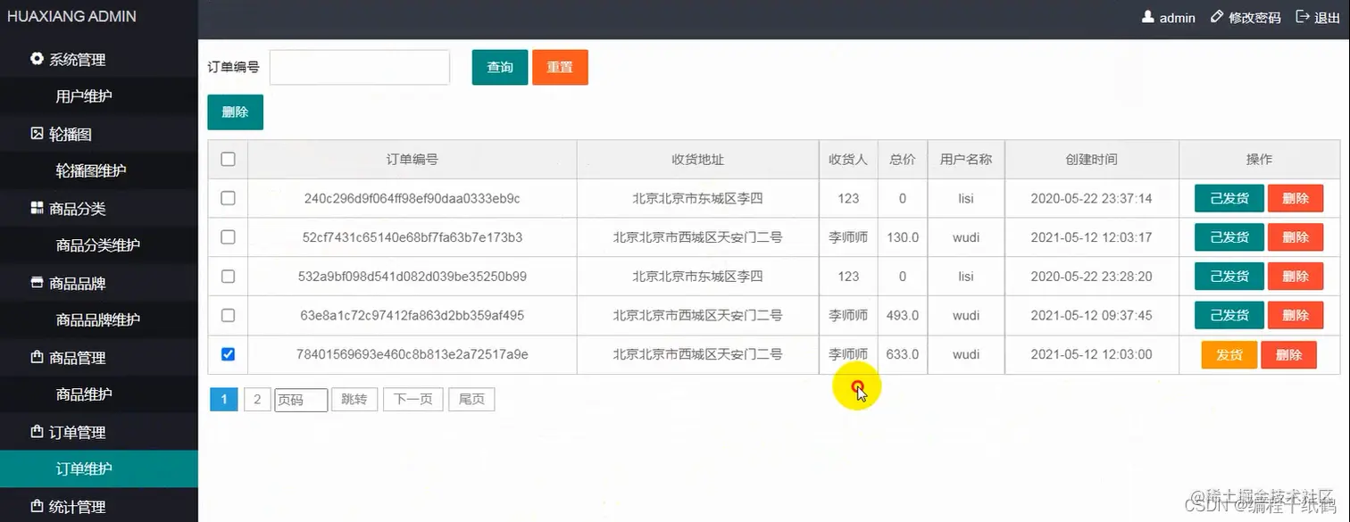 ⑥订单管理:管理员对已经存在的订单进行核对,避免出错。
