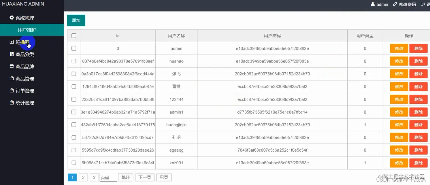 管理员用户功能:修改个人密码,商品类别管理,商品信息管理,会员管理,系统公告管理,订单管理。