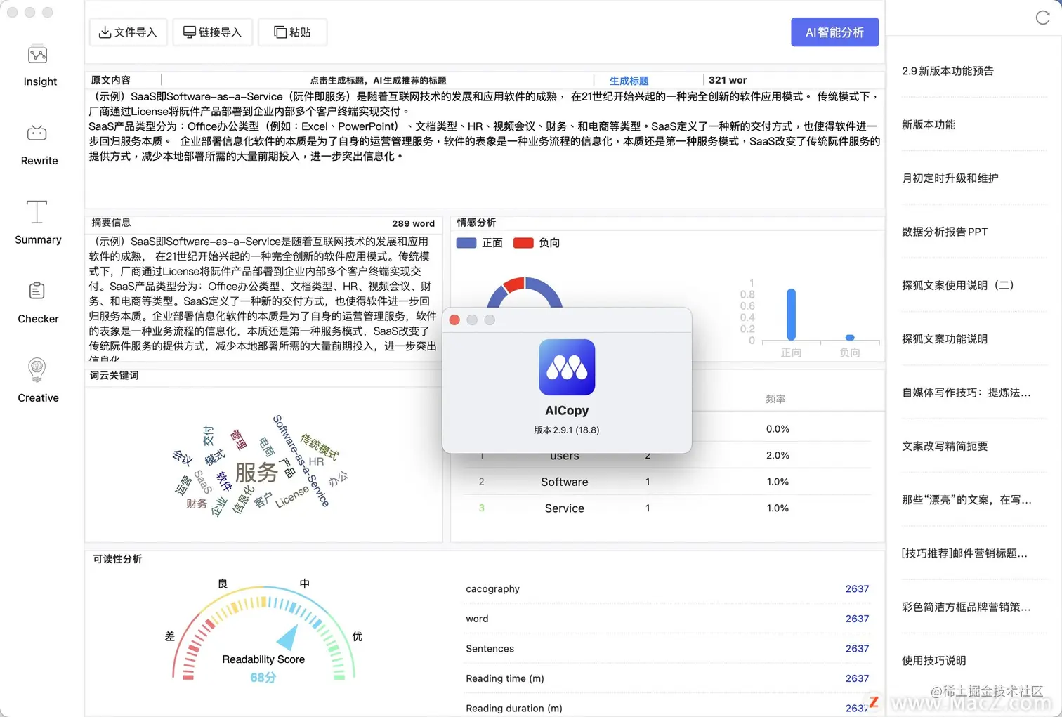 AICopy探狐文案 for mac,博客论文写作软件 用户7079402718470 2023-02-06 67 阅读1分钟 AlCopy探狐文案 for mac,100% 安全可靠,引入原文,一键生成2分钟智能原文,并且摘要工具可以总结文本重点,帮助您过滤研究论文、新闻文章和冗长的电子邮件,是一款值得收藏的博客论文写作软件。 下载:AICopy探狐文案 for mac