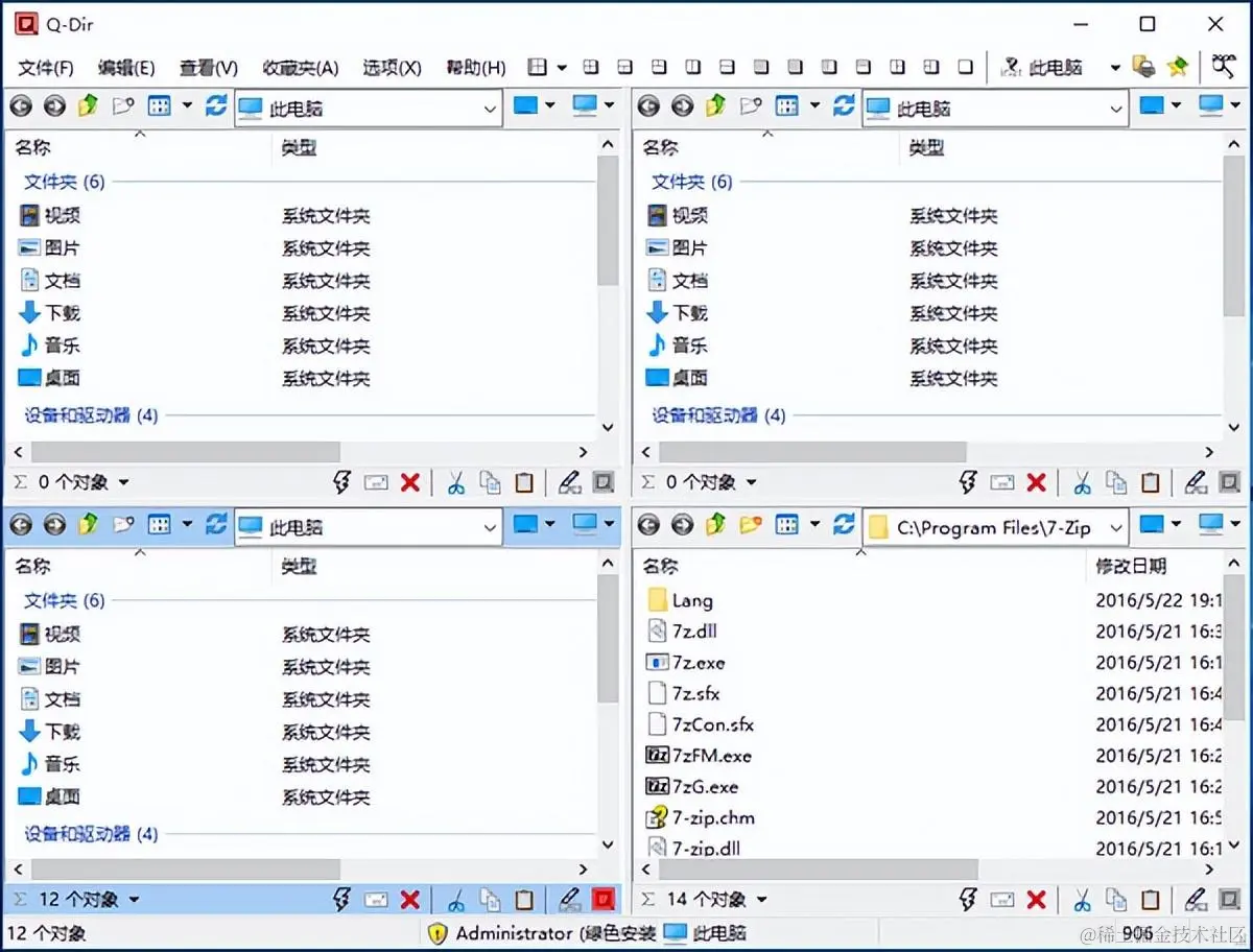 如果你需要对硬盘进行高效率整理,那么Q-Dir绝对是不二之选。这款软件可以理解为一款多屏资源管理器,打开后会有四个窗口,每个窗口显示一个文件夹,比方说A窗口打开C盘,B窗口打开我的文档,C窗口打开下载中心。这样当你从A处向B处移动图片,或者B处向C处复制文档时,就会显得方便多了。Q-Dir在操作上高度模仿资源管理器,窗口大小支持调整,顶端栏可以修改窗口数量及布局。如果你想用最短的时间把硬盘整理好,那就一定要试试它。
