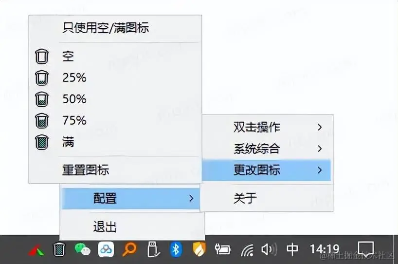 MiniBin可以在系统托盘处生成一个回收站图标,支持空、半空、满三种形态,能够跟随回收站的文件数量自动变化。双击图标默认打开回收站,右击清空回收站。由于不会受到其他窗口遮挡,因此很多时候还是非常方便的。