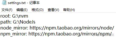 在nvm安装路径中的settings.txt中添加淘宝下载镜像源