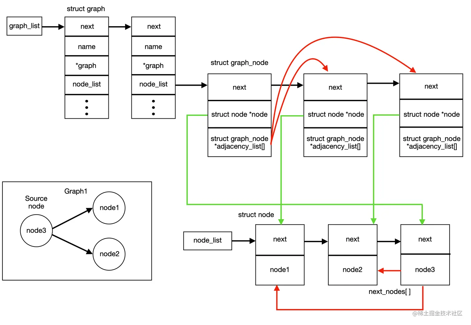 struct node 结构体的用法仅仅是用来描述对应的 node,和 graph 是没有关系的。而 struct graph_node 其实就是把 struct node 包装了一层,主要目的就是强调这个 node 在一个 graph 中。