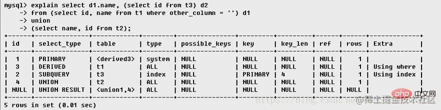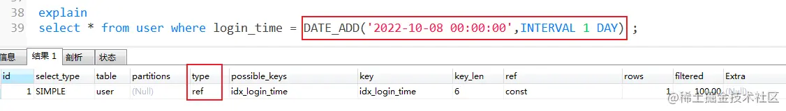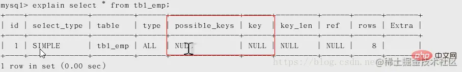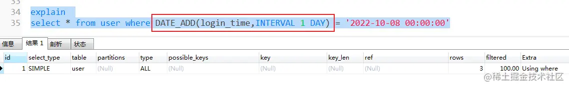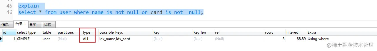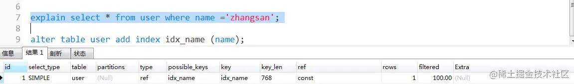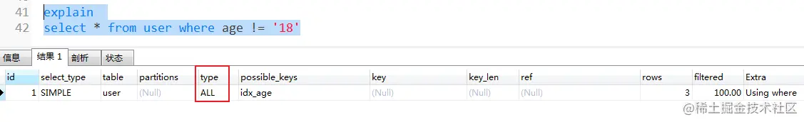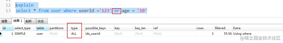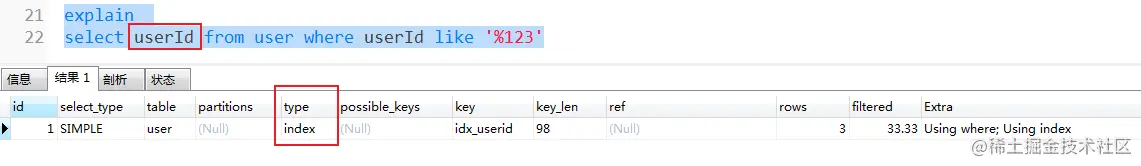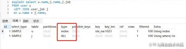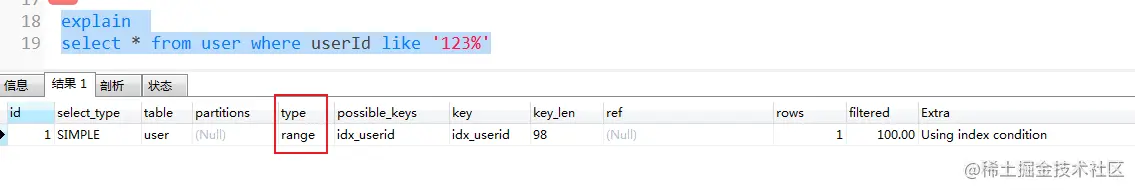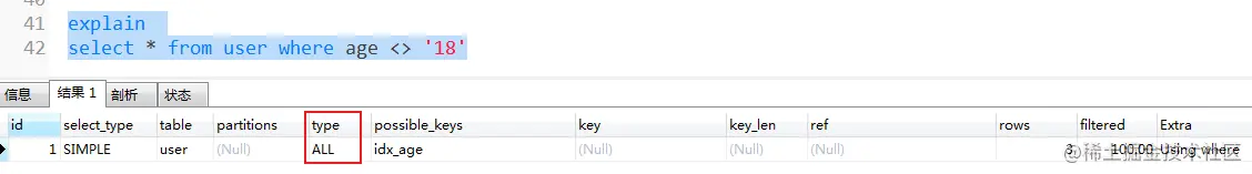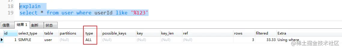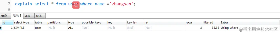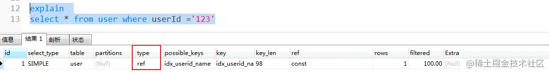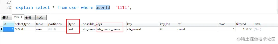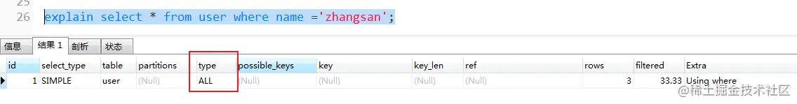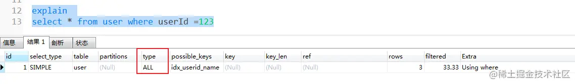 ➤ 通过EXPLAIN,我们可以分析出以下结果: