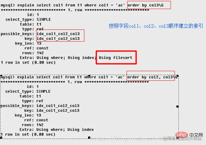 - Extra 这个字段的Using filesort表示使用了文件排序