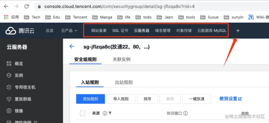 - 但需要在腾讯云“控制台”开启 mysql 端口的权限,如下
