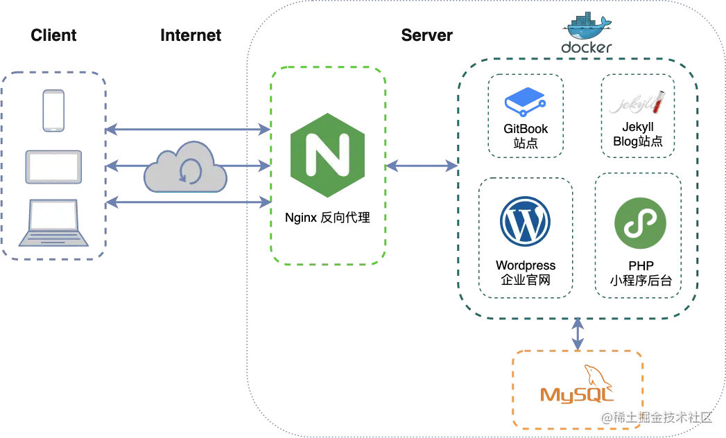 朋友“搞事情”,自己有偿帮忙搭了一套线上服务,包括官网、小程序后台、文档集站点、个人博客站点等。