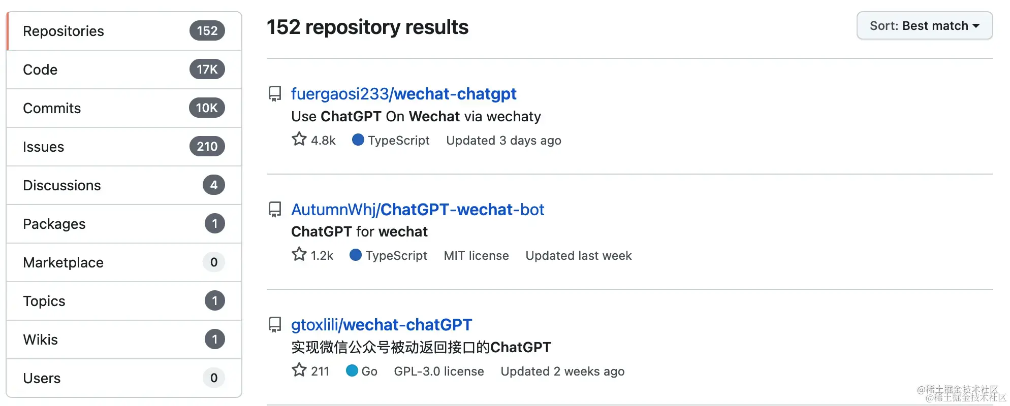 在 Github 上已经有了非常多的大神提供了如何把 ChatGPT 接入微信聊天的方式,主要是 TypeScript、Go 语言开发的。基本这些也都能部署使用。这里小傅哥还看到Docker中有镜像:cynen/wechat 部署起来也非常方便,接下来小傅哥就使用这种方式进行部署。其他 Github中的方式,有感兴趣的读者也可以尝试部署。Github 搜索:ChatGPT wechat
