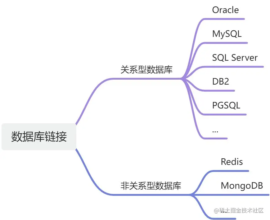 将数据库类型分为关系型和非关系型。