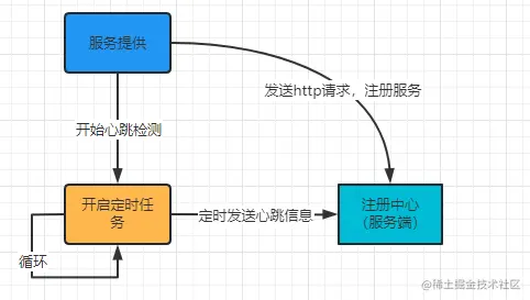 15秒没有收到心跳包会将实例设为不健康,在30秒没有收到心跳包会将临时实例移除掉。 - 接收到服务注册接口,通过