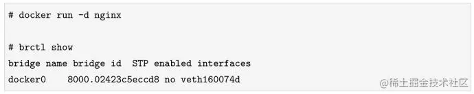 此时docker0网桥上还没有任何对接的网卡。