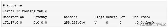 发到主机上要访问Docker容器的报文默认也要经过docker0进行广播,以下为主机的路由表信息: