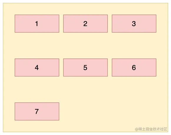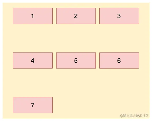 这里以水平方向为主轴时举例,即:flex-direction: row; flex-wrap: wrap;
