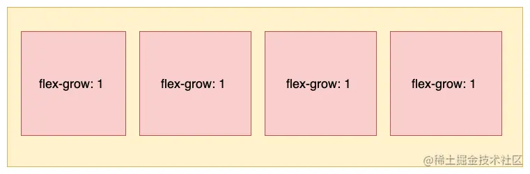 - 如果所有项目的flex-grow属性都设置为1,那么它们会均分剩余的空间,如下图所示: