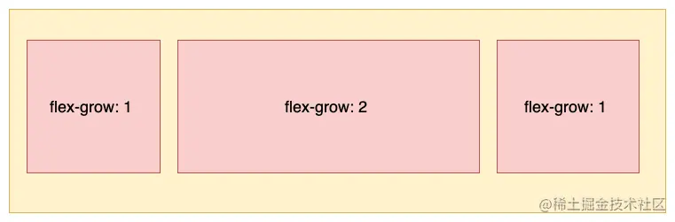- 如果其中一个项目的flex-grow属性设置为2,其他均为1,那么它占据的剩余空间就是其他项目的两倍,如下图所示: