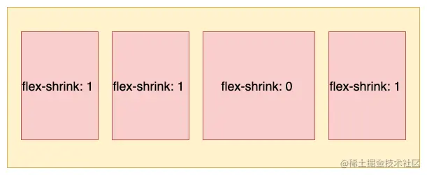 - 如果一个项目的 flex-shrink 属性为 0,其他项目都为 1,则空间不足时,前者不缩小,如下图所示:
