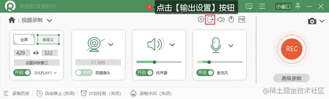 备注:如何录制画质清晰的视频?点击【视频录制】页面右上角的【输出设置】按钮,可以修改视频质量为“无损质量”。